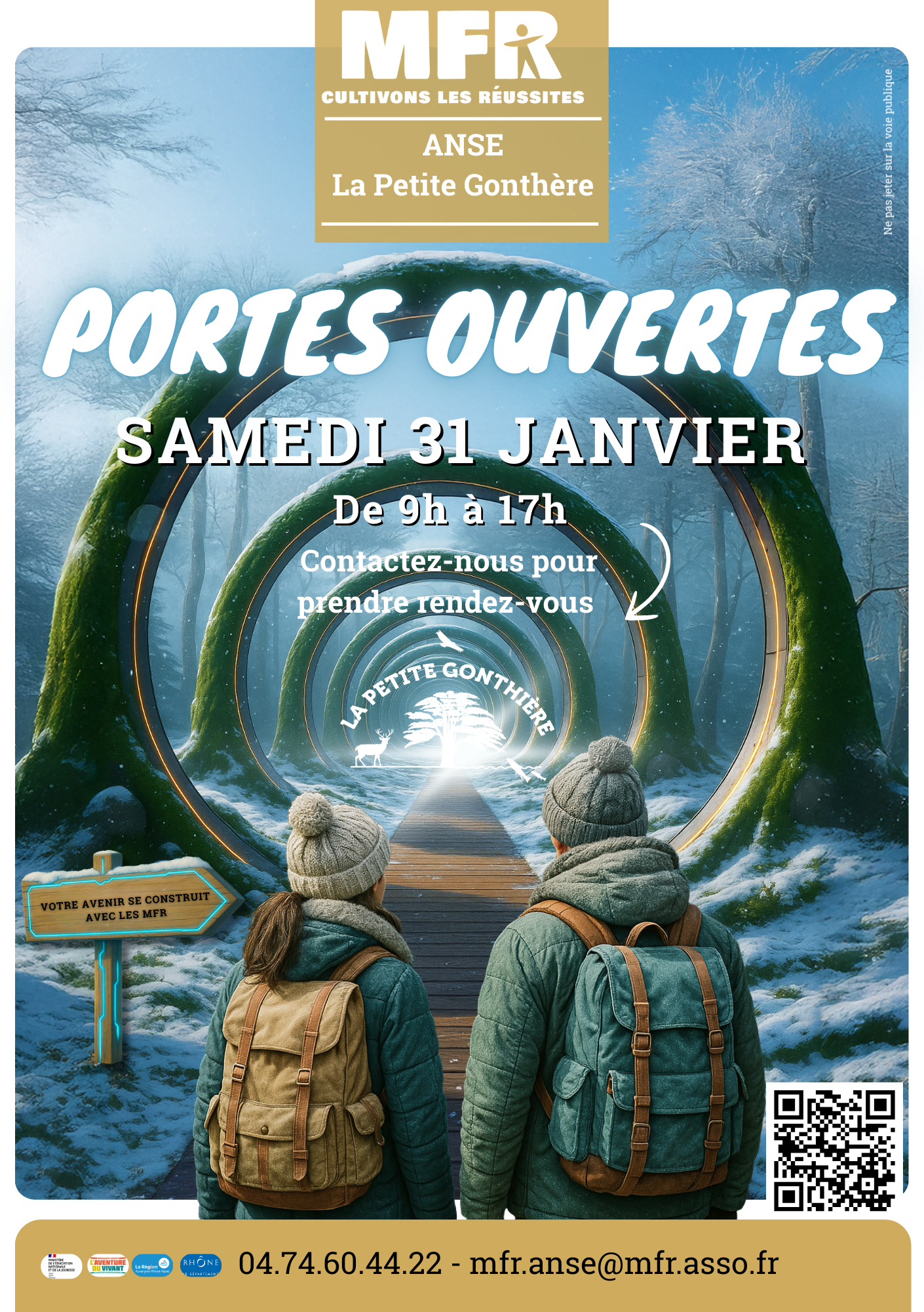 La MFR d’Anse a le plaisir de vous inviter à ses portes ouvertes, qui se dérouleront le samedi 31 janvier, de 9h00 à 17h00, à la MFR La Petite Gonthière à Anse.